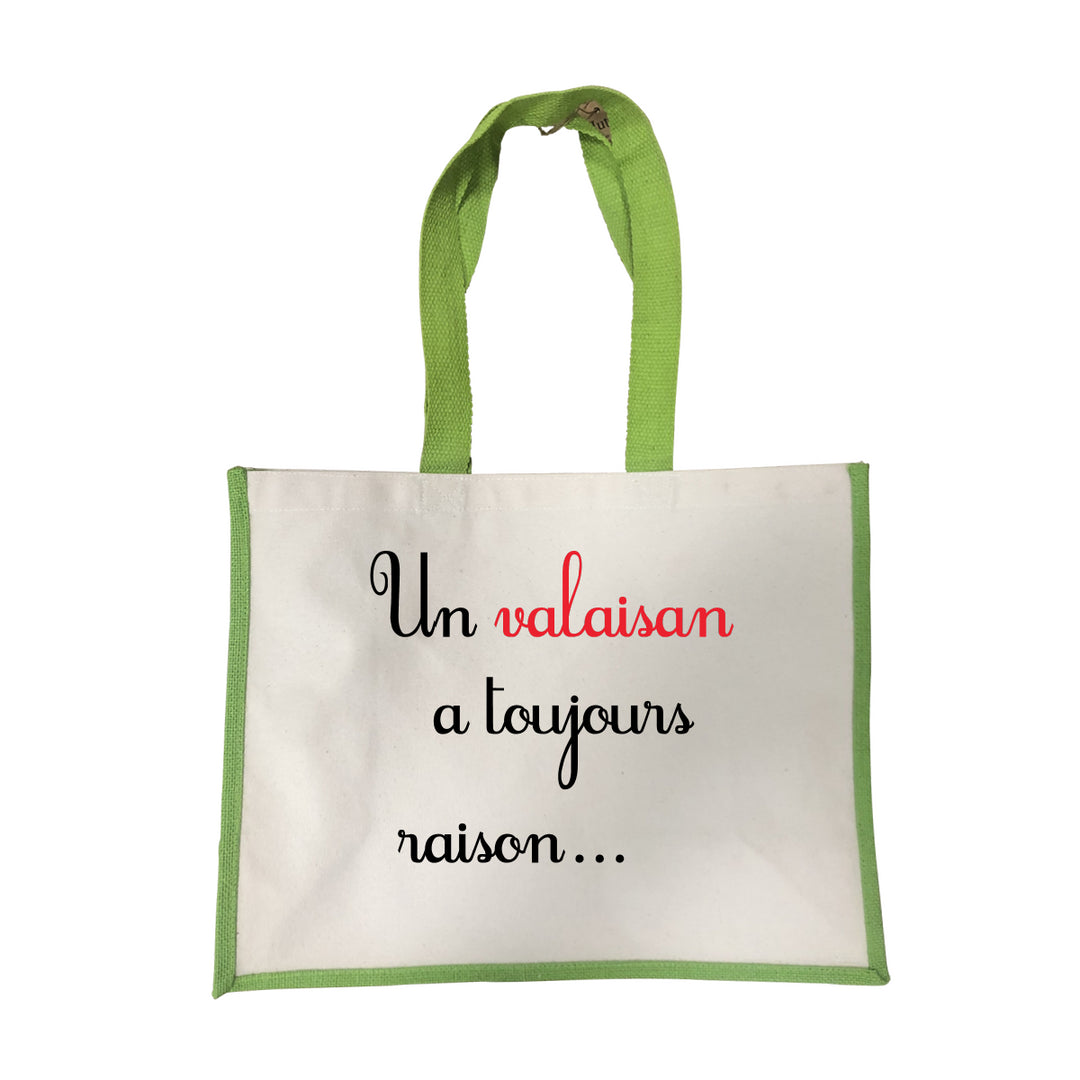 Grand sac Un valaisan a toujours raison vert