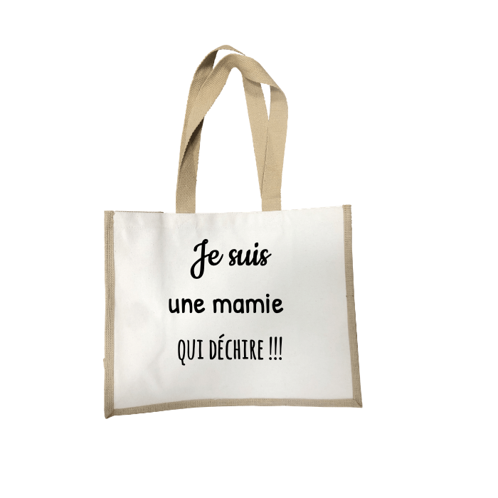 Grand sac toile de jute imprimé personnalisé